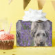 Dans Un Champ D'Iris Violet Est Un Wolfhound Irlandais Scraggly.