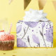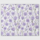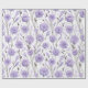 Papier à envelopper avec des fleurs abstraites violettes texturées et des feuilles verts bruns, couleur pastel printemps ou la douceur d'été motif floral romantique. Peinture à l'huile numérique botanique. Papier à enveloppement à fleurs florales. Collection Jardin Violet.