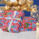 Jars de Gingembre de la Chinoiserie de Vacances ornés de couronnes et d'arcs sur un arrière - plan rose et rouge plaid