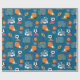 Un Jeu De Sport Bleu Papier D'Enveloppement De Thème Conçu Avec Boules De Basket, Pins De Bowling, Boules De Football, Filets De Hockey Et Gants De Baseball.