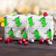 Dino envelopper le rouleau d'anniversaire de papier pour garçon. Joli dinosaure d'anniversaire avec confetti, casquette et souffleur. Pour les soirées à thème dinosaure. Idée cadeau pour les enfants.