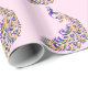 Beau papier d'emballage cadeau avec un arrière - plan lilas pâle, présente des paons colorés, dans les tons violet, or, vert et bleu. Parfait pour offrir des cadeaux pour les anniversaires, les douches, la fête des mères et plus !