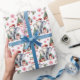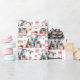 Le motif répété sur ce papier d'emballage de Noël est d'un mignon éléphant gris qui porte un chapeau de Père Noël rouge et blanc. L'éléphant se dresse au milieu des pins et des cadeaux de vacances aux couleurs vives. Le texte rouge et vert dit MERRY CHRISTMAS", avec le nom de votre enfant et votre signature ci-dessous. Les autres images incluses dans la motif sont des flocons de neige et des sucres de canne décoratifs rouges.