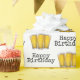 Lunettes de bière froides et texte d'anniversaire heureux sur arrière - plan blanc. La couleur Arrière - plan peut être modifiée.