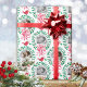 Faites votre cadeau vraiment unique avec ce papier d'emballage de Noël photo personnalisé. Ajoutez 2 de vos photos préférées à l'intérieur de la couronne Happy Holidays Typography. Un oiseau rouge est posé sur la couronne, dans les rouges et les verts de Noël classiques.