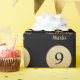 Happy 9th Birthday Black and Gold Parties scintillant Wrapping Papier avec nom personnalisé. Pour plus de personnalisation, cliquez sur le bouton "Customiser" et utilisez notre outil de conception pour modifier ce modèle.