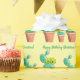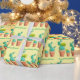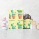 Ce papier d'emballage de style sud-ouest présente trois plantes de cactus en pot deux avec des fleurs jaunes. Le message texte de célébration d'anniversaire heureux peut être changé dans le champ modèle à n'importe quoi ou supprimé.