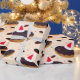 Envelopper le papier avec un motif souriant, le chocolat gelé, le beignet portant des chapeaux santa sur un arrière - plan bronzé.