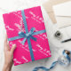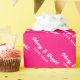 Joyeux et brillant néon rose script Noël papier enveloppant. Elégant boule gomme rose cadeau rouleaux personnalisés avec nom et voeux de vacances. Design motif chic pour amis et famille.