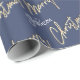 Papier Cadeau Joyeux Noël Golden Script Nom Blue Navy