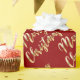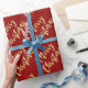 Joyeux Noël dans un script élégant moderne dans un look or métallique sur un arrière - plan rouge élégant.