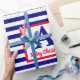 Papier Cadeau Joyeux Noël Monogramme Nautique Rouge Bleu Blanc