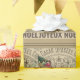 Vintage Père Noël dans son traîneau tiré par son renne avec un sac rempli de jouets et un arbre pour la veille de Noël contre une publicité vintage pour la typographie du chocolat français. Le texte dit "Joyeux Noel" qui se traduit par "Joyeux Noël".