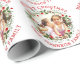 Rouge Joyeux Noël et papier d'emballage photo de fêtes à couronne fleurie. Personnalisez avec votre propre photo et texte.