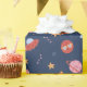 Kids space-themed wrapping paper with rockets and planets in a playful repeating pattern. This kids space pattern features rockets, planets, and hearts arranged in a fun cosmic design created for children’s gifts and everyday use.