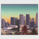 L'illustration colorée de vecteur comportant un horizon magnifique a dominé par des gratte-ciel et des palmiers de Los Angeles du centre avec un beau coucher du soleil californien à l'arrière-plan.