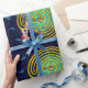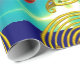PAPIER CADEAU LABYRINTH D'OR HYPER, VAGUES LUMINEUSES D'AQUA BLE