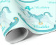 Papier d'emballage d'anniversaire dans la conception d'art de cheval de basculage d'aqua. Personnalisez ce quatrième document d'anniversaire avec votre propre choix du nom. Lit actuellement le joyeux 4ème anniversaire Maddie. Perfectionnez pour envelopper un cadeau d'anniversaire spécial. Uniquement peint dans l'aquarelle et conçu par Sarah Trett.