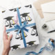 Creative law school graduation gift wrap for lawyer grad featuring classic black cap with gold tassel and scales of justice pattern.