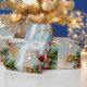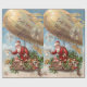 Papier d'emballage vintage avec du charme comportant Père Noël dans un dirigeable complètement des jouets.