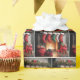 Une cheminée confortable est décorée d'une guirlande de lumières et d'arcs rouges tandis que les bas sont remplis de cadeaux et de friandises