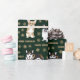 Papier Cadeau Les Corgis fêtent Noël - emballage vert motif