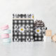 Texte de maman avec fleur marguerite blanche et pétales sur motif en vichy blanc et noir.
