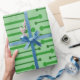 Ce papier d’emballage a une conception moderne du milieu du siècle, avec des lignes avec des cercles au bout dans les tons verts pour la Saint Patrick’s Day.