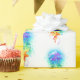Grande méduse irisée, artistiquement dessinée, brillante, avec de longues tentacules sur le blanc, peinte sur l'arrière - plan multicolore. Méduse arc-en-ciel.