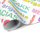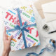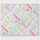 Un papier d'emballage amusant et gai pour accompagner un cadeau de remerciement. Le design simple présente le mot Merci répété dans différentes couleurs et 20 langues différentes.