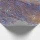 Image stylisée en fausse couleur de la surface de la planète Mercury. Première planète du Soleil, Mercure possède des hautes terres (violettes), des falaises, des plaines de lave (bronze) et des cratères.