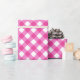 Ce papier d'emballage présente un motif de plaid en vichy rose et blanc chaud.