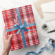 Papier d'emballage en tissu plaid rouge et blanc. Le design se compose d'un tissu flanelle faux rouge et blanc, avec des touches de rose clair. Conçu par Moodthology Papery