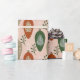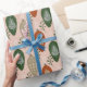 Ajoutez une touche rétro à votre cadeau avec ce papier d'emballage de Noël élégant. Il présente des ornements verts, oranges et bronzés sur un arrière - plan rose. /cao/c