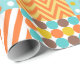 Motif de patchwork d'inspiration rétro avec des motifs plus petits comme le chevron, les rayures et les pois. Dans ce design vous pouvez aussi voir des couleurs comme l'orange, le bleu aqua, le jaune moutarde, le marron et le blanc.