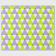 Motif géométrique tendance avec triangles violet, vert citron et blanc.
