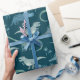Beaucoup de dinosaures bleus sur un arrière - plan vert turquoise foncé. Tyrannosaurus Rex, Spinosaurus, Stegosaurus, Diplodocus et Tricératops. Parfait pour les paléontologues en herbe ! Art original de Nic Squirrell.