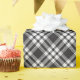 Cette élégante conception de papier d'emballage carré en diagonale présente un motif écossais classique en carton écossais noir et blanc.