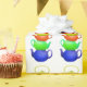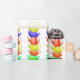 Des théières colorées, peintes, empilent les unes sur les autres pour créer un motif coloré. Un design amusant, avec une ambiance rétro pour les amateurs de thé.