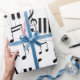 Papier d'emballage à thème musical - design comprend clavier piano, notes de musique, clés de treble, clés de basse et repose-pieds. Idéal pour les professeurs de musique et les chanteurs ou les joueurs de piano.