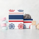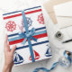 Design nautique avec voilier et décoration boussole sur rouge, bleu et blanc rayé arrière - plan