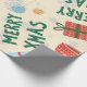 Noël 2022 moderne joli papier d'emballage rose rouge vert élégant pour enfants. Adorable pastel rose avec texte Joyeux Noël. Ce mignon Motif rose est une combinaison de petites filles, ornements, cadeaux, tasses rouges et flocons de neige gris.
