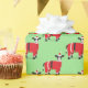 Papier d'emballage animal de nouveauté avec vaches habillé en tenue Père Noël dans un motif sur un arrière - plan vert. Faites de votre cadeau un moment festif et amusant comme ils ne s’y attendent pas. Choisissez ce papier d'emballage, ajoutez-le à votre panier et faites un Joyeux Noël !
