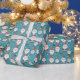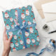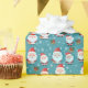 Papier d'emballage cadeau de Noël à Père Noël mignon. Joli petit Santas sur un arrière - plan bleu clair.