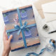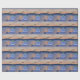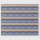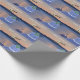 Ce papier d'emballage de Noël présente le Père Noël survolant Santorin, en grec.