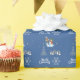Papier d'emballage de Noël arrière - plan bleu vintage avec souhaits de Noël, homme blanc de neige, flocon de neige, boîtes cadeaux blanches et décorations de parties scintillant d'or, faire ce papier un cadeau amusant pour les amis et la famille.