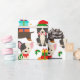 Une excellente façon d'envelopper des cadeaux pour un amoureux des chiens (ou votre chien!) ce mignon motif de dessin animé chien chiot fait un papier d'emballage amusant et coloré. Plusieurs types de chiens, y compris les carlins et les dachshunds. Avec le saint de Noël et les cadeaux.