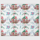 Nome d'aquarelle mignonne avec lanterne et arbre de Noël et décoration de mistletoe, cône de pin et baies rouges et bleues