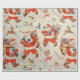 Vintage, rétro Papier de vacances avec Santa Claus, jouet avion, poupées, batterie, jouet cheval, sucres de canne et rennes.