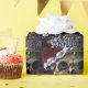 crâne dans un casquette de Père Noël, illustration dans le crayon de couleur sur le papier noir